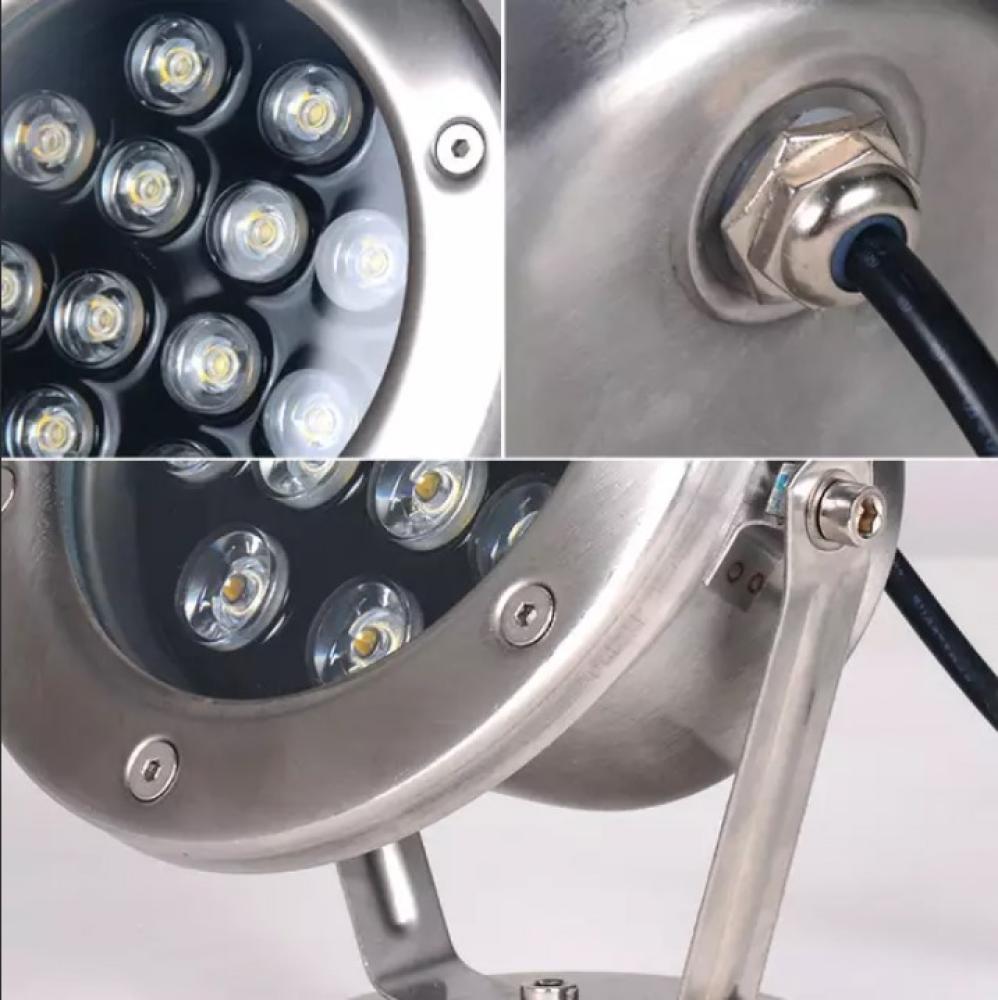 أضف لمسة إضاءة ذهبية أنيقة لنوافيرك مع كشاف نافورة LED موجه بقوة 12W. مصنوع من الستيل المقاوم للصدأ (304 SS) مع حماية IP68، مما يجعله مثاليًا للاستخدام تحت الماء. يعمل بجهد آمن 12V AC، ويمنحك إضاءة صفراء دافئة (Warm White) بسطوع 1300 لومن وعمر تشغيل يصل إلى 50,000 ساعة.