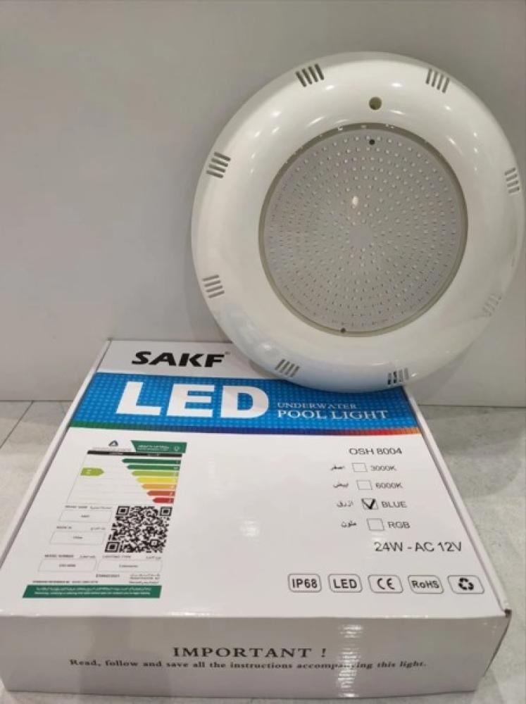 ٣١٢٫١٧ارتقِ بإضاءة مسابحك مع كشاف لطش كامل بلاستيك من ساكف — تصميم أنيق ومقاوم للماء (IP68) بقدرة 24W وفعالية 1800 لومن. مثالي للإضاءة تحت الماء، ويعمل بجهد 12V AC، مع عمر افتراضي يصل إلى 50,000 ساعة.