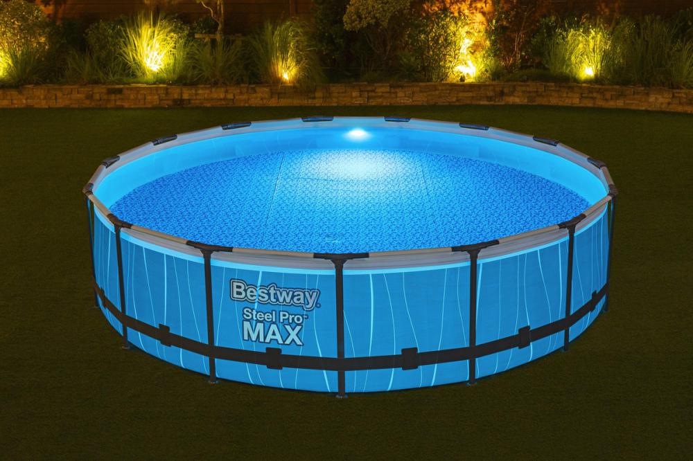 أضئ صيفك بحمام السباحة الخاص بك في الفناء الخلفي لمنزلك! تعد مجموعة Bestway® Steel Pro MAX™ فوق سطح الأرض بمتعة فائقة مع بطانة شبه شفافة ومتغيرة الألوان هي الأولى من نوعها في الصناعة.